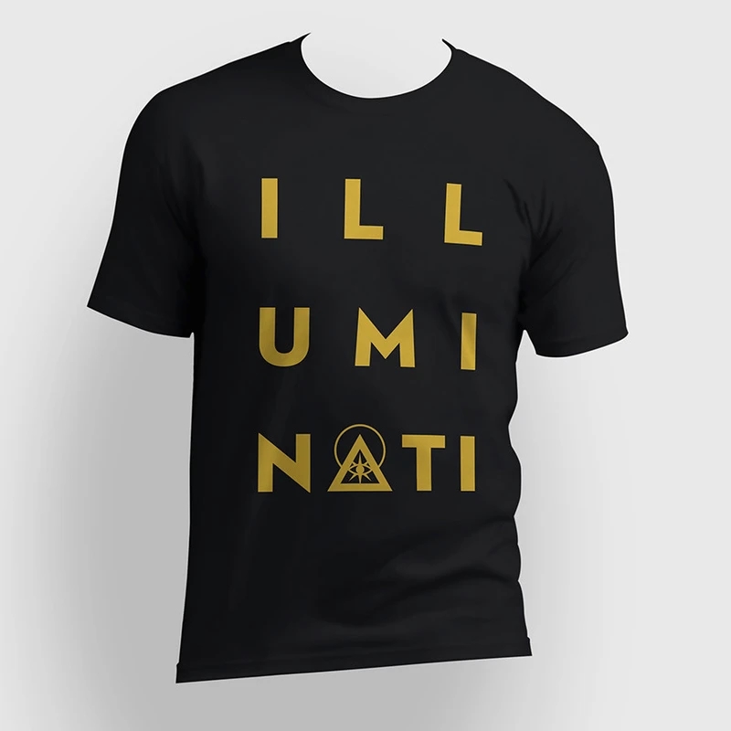 This premium fitted, short-sleeve shirt displays the Illuminati’s symbol, the Pyramid, the Eye, the Light, and the Eternal Circle.